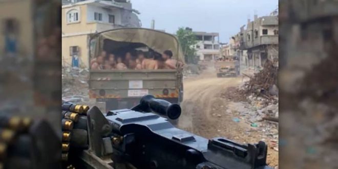 وأظهرت صور من غ-ز ة تم تداولها على وسائل التواصل الاجتماعي، الخميس، الرجال وهم مجردين من ملابسهم الداخلية، راكعين في الشارع، ومعصوبي الأعين، ومكدسين في مركبة عسكرية.