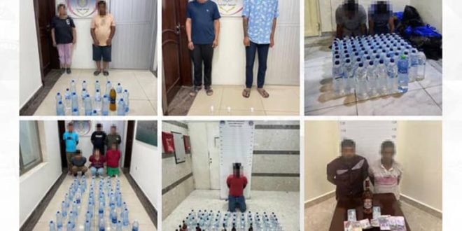 وقالت الداخلية في بيانها: “في إطار الجهود الأمنية المتواصلة لقطاع الأمن الجنائي لمواجهة مرتكبي الجرائم وتطبيق القانون على الجميع، تمكن القطاع ممثلاً في الإدارة العامة للمباحث الجنائية ’ادارات مباحث المحافظات‘ من ضبط 15 شخصاً من مختلف الجنسيات في (6) قضايا منفصلة وبحوزتهم (265) زجاجة خمر محلية الصنع وزجاجة خمر مستوردة..”