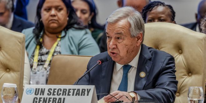 قال الأمين العام للأمم المتحدة، أنطونيو غوتيريش، الأحد، إن رفض قبول حل الدولتين للإسرائيليين والفلسطينيين، وإنكار حق الشعب الفلسطيني في إقامة دولة، “أمر غير مقبول”، حسب وصفه.