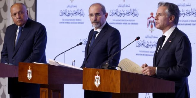 وأوضح بلينكن خلال مؤتمر صحفي في عمان مع نظيريه المصري والأردني: “طوال هذا الصراع، لعبت الدول في جميع أنحاء الشرق الأوسط وخارجه دورًا أساسيًا في منع انتشاره”.