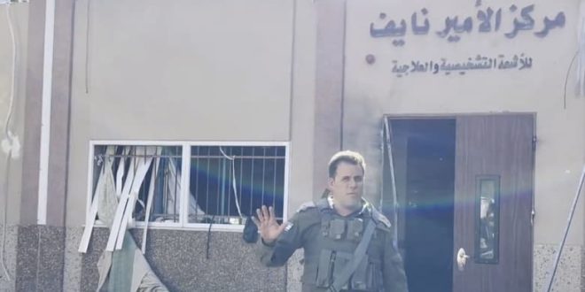 تداول نشطاء على مواقع التواصل الاجتماعي مقطع فيديو نشره الجيش الإسر-ائيلي من داخل مركز الأمير نايف للأشعة التشخيصية والعلاجية بمستشفى الشفاء في قطاع غ-ز ة.