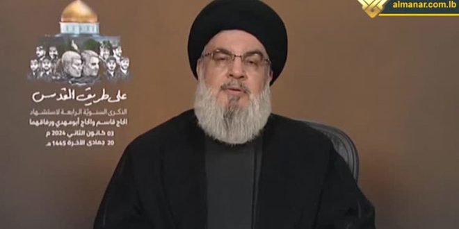 تداول نشطاء على مواقع التواصل الاجتماعي مقاطع من كلمة الأمين العام لحزب الله اللبناني، حسن نصرالله بعد مقتل القيادي بحركة ح-م-اس، صالح العاروري في العاصمة اللبنانية، بيروت.