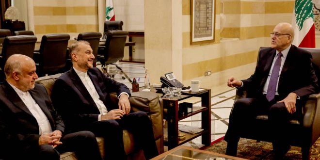 كما التقى وزير الخارجية الإيراني، صباح السبت، رئيس حكومة تصريف الأعمال اللبنانية، نجيب ميقاتي، في بيروت، حيث تباحثا حول المستجدات على الساحة الفلسطينية، حسبما أوردت وكالة الأنباء الإيرانية الرسمية “إرنا”.