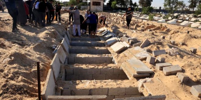 – أعلن سلامة معروف رئيس المكتب الإعلامي الحكومي الذي تسيطر عليه حركة حماس في غزة، أنه تم دفن عشرات الجثث مجهولة الهوية في مقابر جماعية في مدينة غزة.