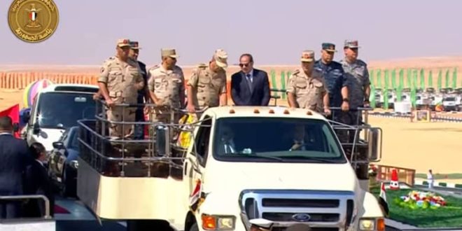 وقال السيسي في كلمة له خلال التفتيش: “في نقوم بدور إيجابي لوقف إطلاق النار في غزة بشكل أو بآخر وإيقاف نزيف الدم ونسعى جاهدين بالتعاون مع الأشقاء والشركات لنعمل حاجتين احتواء التصعيد ومساندة المدنيين في قطاع غزة التي يحتاجونها”.