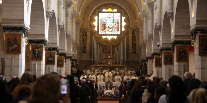 وأُقيم قداس صباح الخميس في كنيسة المهد ببيت لحم، بعد يوم من توافد حشود من الفلسطينيين والسياح الأجانب إلى ساحة المهد لحضور الاحتفالات لأول مرة منذ توقفها تضامنًا مع الفلسطينيين الذين يعانون من حرب دامية دامت عامين في غزة.