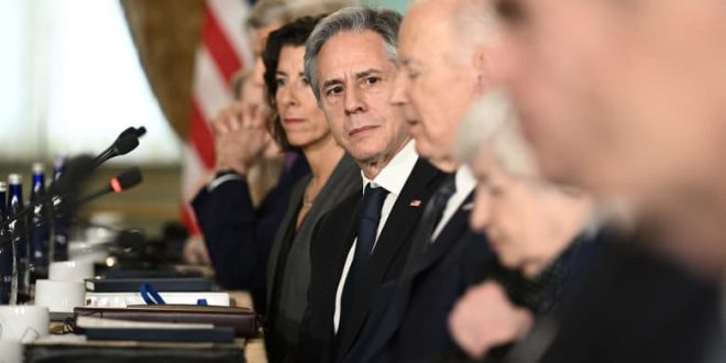 تداول نشطاء على مواقع التواصل الاجتماعي مقاطع فيديو تظهر ما وصفوه بـ”تعابير وجه” وزير الخارجية الأمريكي، أنتوني بلينكن خلال مؤتمر صحفي للرئيس الأمريكي، جو بايدن.