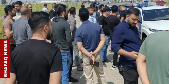تظاهر أكثر من 40 شخصاً من وكلاء ومشغلي أبراج الإنترنت في كركوك، يوم الاثنين، احتجاجاً على قرار إطفاء الأبراج في المحافظة.