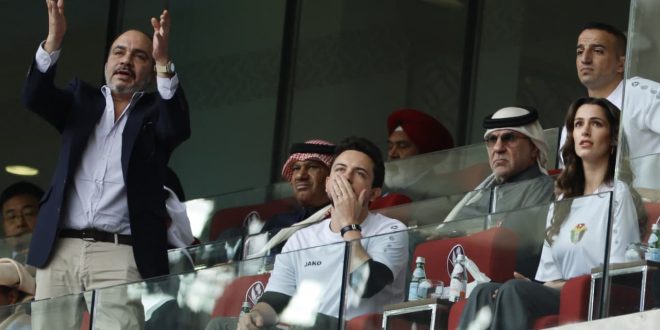 رصدت عدسات الكاميرا صورا عفوية لكل من ولي عهد الأردن، الأمير الحسين بن عبدالله الثاني وزوجته الأميرة رجوة وعمه الأمير علي بن الحسين خلال مباراة ربع نهائي كأس آسيا، الجمعة.