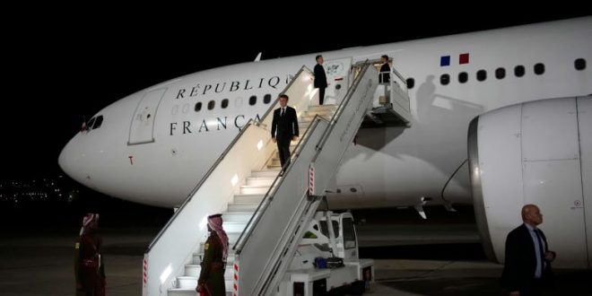 ونقلت وكالة الأنباء الأردنية الرسمية “بترا” الثلاثاء نبأ وصول ماكرون إلى المملكة، قائلة إنه كان في استقباله رئيس بلدية عمّان يوسف الشواربة، ومحافظ العاصمة الذي يعتبر مسؤولا إداريًا يتبع وزارة الداخلية الأردنية، إلى جانب السفير الفرنسي في عمّان، وذلك لدى وصوله مطار ماركا العسكري.