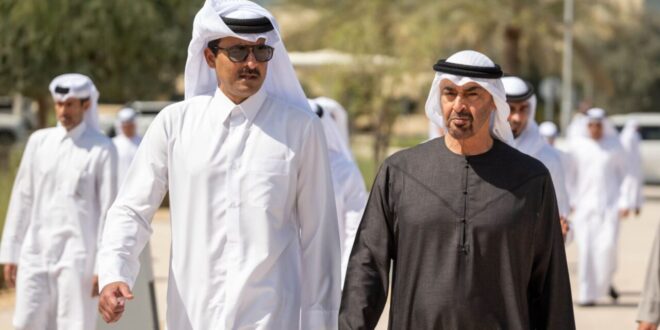 — تلقى أمير قطر، الشيخ تميم بن حمد آل ثاني، اتصالاً هاتفيًا، السبت، من الشيخ محمد بن زايد آل نهيان رئيس دولة الإمارات، بحسب الديوان الأميري.
