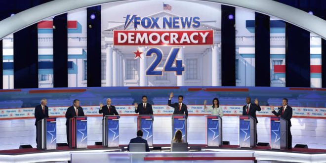 رفع جميع المرشحين الرئاسيين الجمهوريين، باستثناء واحد، أيديهم في المناظرة التي عقدها الحزب الأمريكي عندما سُئلوا عما إذا كانوا سيدعمون الرئيس الأمريكي السابق دونالد ترامب إذا أصبح مرشح الحزب – حتى لو تمت إدانته.