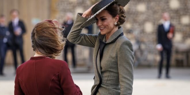 ممسكة بقبّعتها طوال الوقت.. الرياح "تربك" كيت ميدلتون في بريطانيا