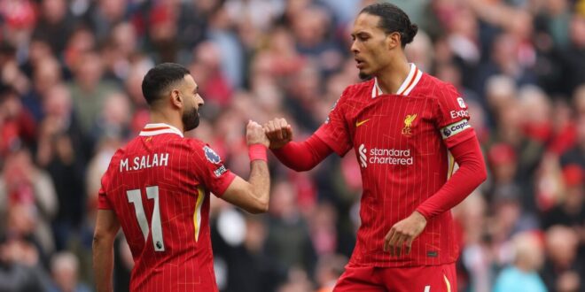 موقف "طريف" بين محمد صلاح وفان دايك بعد مباراة ليفربول وإيفرتون