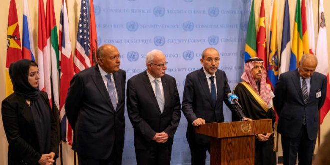 وقال وزير الخارجية الأردني، أيمن الصفدي، في مؤتمر صحفي مشترك في نيويورك مع وزراء خارجية السعودية ومصر والسلطة الفلسطينية والأمين العام لجامعة الدول العربية، على هامش جلسة مجلس الأمن بشأن الوضع في غزة: “جئنا لنقول في موقف واحد أننا نطالب بالوقف الفوري لهذه الحرب التي لن تنتج إلا المزيد من الدمار والمآسي، لن تؤدي إلى سلام، ولن تضمن أمن إسرائيل ولا أمن فلسطين، بل تهدد بالخطر على أمن المنطقة برمتها”.