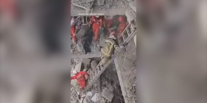 سارعت فرق الإنقاذ لمساعدة المحاصرين في مبنى سكني بمنطقة ميدان رسالت في طهران، وفقًا لما ذكرته وسائل الإعلام الرسمية، الاثنين. وأظهرت لقطات نشرتها جمعية الهلال الأحمر الإيراني عمال الإنقاذ وهم يتسلقون السلالم داخل أنقاض المبنى المدمر، بينما أفاد أحد رجال الإنقاذ بوجود محاصرين في الطابق الخامس.